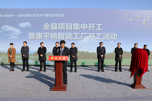县委副书记、县长唐敬、县政协主席邱德兵等县领导;射阳县职能部门主要负责人;康平纳集团董事长陈队范、机械科学研究总院博士王绍宗等200余人参加开工仪式。