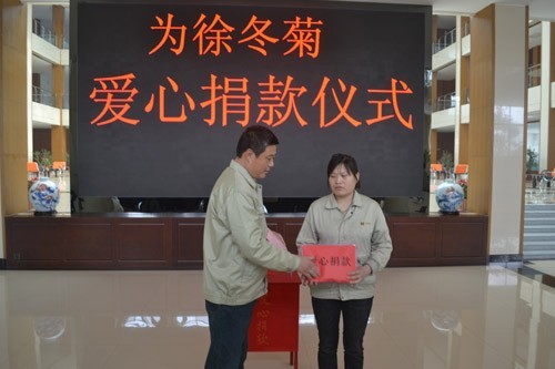 当接过公司领导转交过来的36105元爱心捐款时,徐冬菊的泪水禁不住流下脸颊。这是近日发生在康平纳集团感人的一幕。