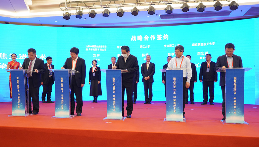 会议举行了山东中康国创先进印染技术研究院有限公司入驻新址揭牌仪式,与俞建勇、单忠德、陈纯、彭孝军4个院士团队进行战略合作签约,为首席科学家俞建勇院士颁发聘书,为战略咨询专家委员会主任俞建勇、战略咨询专家委员会副主任单忠德颁发聘书,为领衔科学家陈纯院士、彭孝军院士、单忠德院士颁发聘书,为国家先进印染技术创新中心战略顾问专家孙晋良院士、蒋士成院士、王玉忠院士、夏长亮院士、陈文兴院士、夏东伟校长、徐卫林校长、张淑芬教授、李陵申副会长、陈志华会长、陈队范董事长颁发聘书,为国家先进印染技术创新中心牵头单位、建设单位授牌。