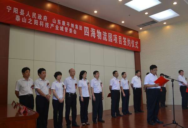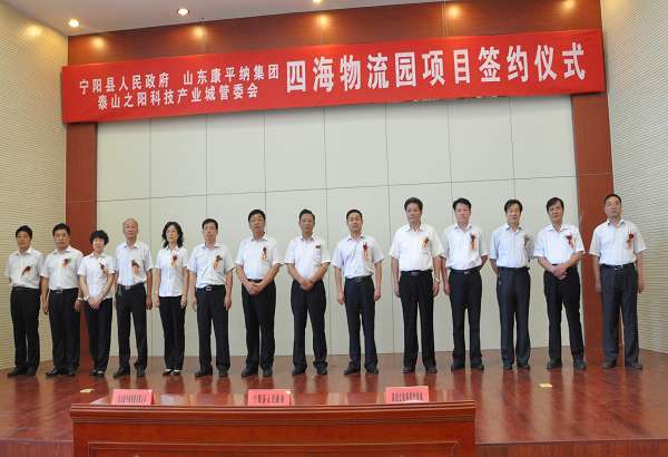 9月3日,康平纳集团投资建设的四海物流园项目签约仪式在宁阳举行。宁阳县县委副书记、县长黄正玉、县人大常委会主任徐鑫、县政协主席李为群等宁阳县领导参加。集团董事长陈队范、总经理刘琳等公司高层参加。 四海物流园项目投资总额约15亿元,规划总占地面积3000亩。主要建设煤炭加工区和各种物资仓储集散区等。 物流园建成后,可有效辐射鲁中地区,为周边省市及周边客户提供增值服务,进一步巩固和扩大企业物流市场占有率。带动煤炭加工物流的整体水平,促进和优化康平纳产业结构调整,扩大吸引外资,提升企业的核心竞争力,形成集团一二三产业并存发展的良好局面。 同时,项目的兴建对优化宁阳县物流资源整合配置,实现交通运输和商贸流通现代化,促进宁阳县经济建设和物流业发展具有历史性的促进作用。