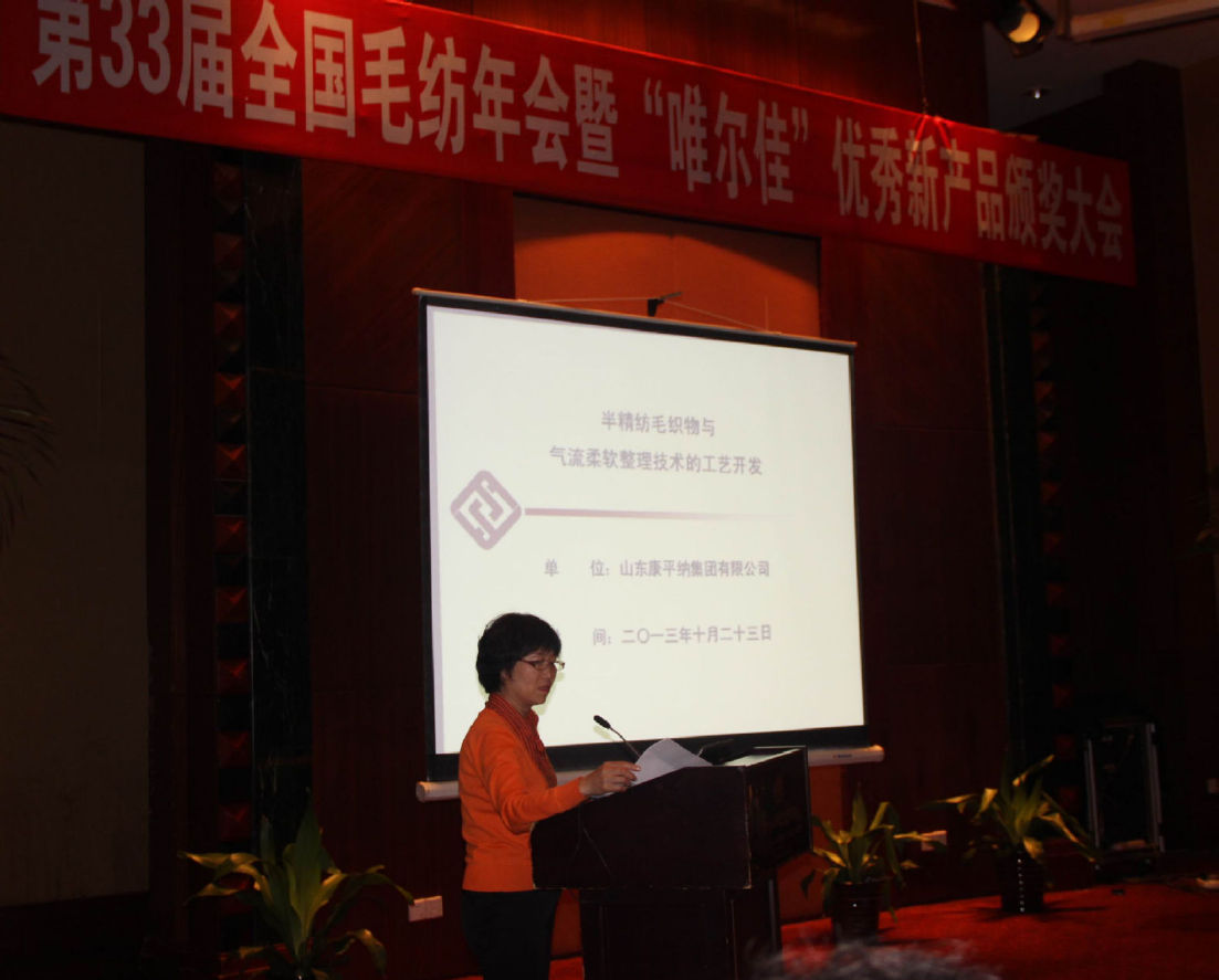 2013年10月24日—26日,第十二届亚洲纺织会议在上海召开。集团总经理刘琳被评为2013年中国纺织技术带头人。 在23日提前召开的2013年全国染整可持续发展技术交流会会场及第33届全国毛纺年会暨“唯尔佳”优秀新产品颁奖大会上,集团副总经理鹿庆福、谢松丽分别发表主题演讲,详细介绍了康平纳在染整技术、半精纺面料新工艺技术开发与应用方面取得成果。期间,由我公司送展的康平纳牌高档羊绒系列面料分别荣获一、二、三等奖各一项,惊艳全场。 在25日东华大学分会场,由我公司冠名举办的“康平纳杯”现代纺织装备技术研讨会上,集团总经理刘琳发表主题演讲,并与东华大学签订校企合作协议书。机械科学研究总院吴双峰工程师做《筒子纱染色数字化技术研究》学术报告,从专业技术角度介绍了康平纳机械有限公司的筒子纱染色数字化自动成套技术与装备。 会议期间,按照董事长指示,充分利用视频、展板、冠名、主题报告等多种形式向外界展示康平纳公司形象与技术装备,达到预期宣传效果。